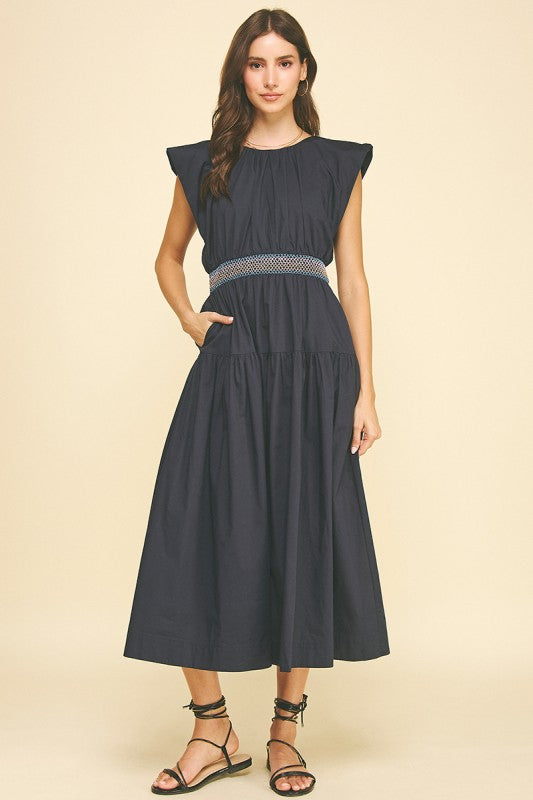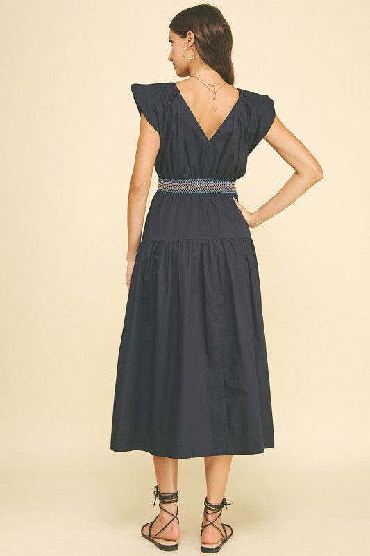 Embroidered Waist Midi Dress