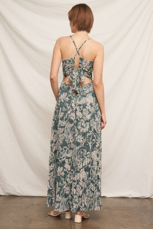 Floral Pleated Tie Back Dress