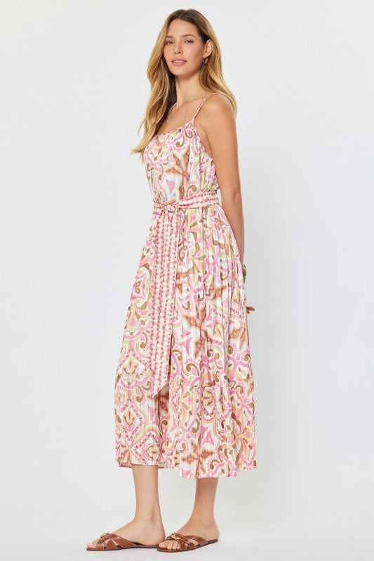 Medallion Print Belted Midi Dress